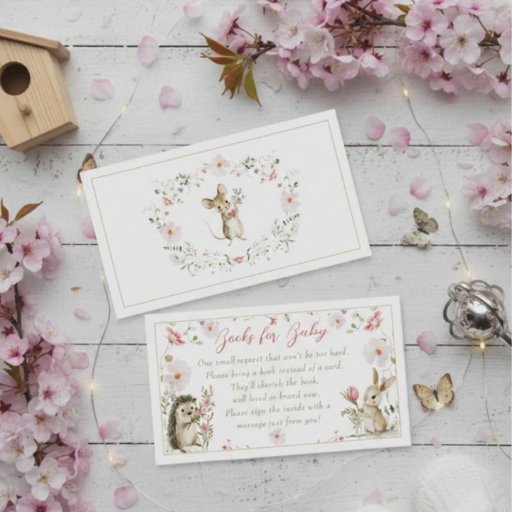 Fira den kommande ankomsten av din lilla en med denna förtrollande skogsdjurs-inbjudan till baby shower. Med en delikat akvarellkrans av vilda blommor och grönska visar denna design upp en genomskinlig akryl-inbjudan med en söt skara skogsvänner, inklusive en gåsunge, mus, kanin, igelkott och ekorre.