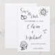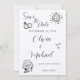 Nyckfull bröllopsinbjudan med lekfulla ikoner spara datumet