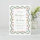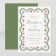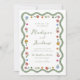 Dela din speciella dag med konstnärlig elegans med denna fantasifulla folkkonst akvarellblommiga bröllopsinbjudan. Designen visar parets förnamn i mjuk grön handskriven stil i mitten och skapar en romantisk och personlig fokuspunkt. En graciös, utskuren ram av handmålad grönska omger designen, accentuerad med ömtåliga akvarellblommor och färgglada dekorativa prickar i nyanser av rosa, gyllengult, blått, rött och mjukt grönt. Den flödande botaniska ramen ger rörelse och charm samtidigt som den bibehåller en förfinad, tidlös look. Perfekt för trädgårdsbröllop, utomhusceremonier och par som dras till unik akvarellbrevpapper, erbjuder denna inbjudan