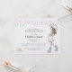 Lekfull inbjudan till blivande mammas babyfest med en lekfull illustrerad scen som berättar en historia om en glad blivande mamma som går under sitt paraply i regnet medan två små kycklingar småpratar i närheten. Den charmiga illustrationen tillför värme och personlighet till firandet medan den rena layouten håller fokus på detaljerna för din babyfest och gör designen enkel att anpassa. Ett förtjusande val för värdar som uppskattar lättsam illustration och lite berättande i sina inbjudningar. Finns tillgänglig i tryckt version, som digital nedladdning eller båda.