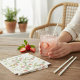 Transporterar dina gäster till en charmig sommarsalong med denna vintage-inspirerade design för pappersservetter. Konsten visar upp en vacker komposition av handmålade jordgubbar och klassiska vita prästkragar, accentuerade med frodig grönska. Mönstret är perfekt för utomhusfiranden, brudshower eller andra evenemang där du vill tillföra en känsla av naturlig skönhet och tidlös charm. Den charmiga akvarellestilen ger ett unikt, konstnärligt tillskott som förhöjer dukningen och skapar en minnesvärd måltidsupplevelse för alla dina gäster.