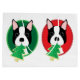 Den gulliga och festliga Boston terrieren med en gåva för julgrankakajul hänger lös