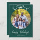 Ett modernt julkort med ditt favoritfoto i mitten av en cirkelformad prydnad med en nyckfull handritad rosett, på en redigerbar jadegrön bakgrund. Den redigerbara hälsningen "God Jul" är i vit kursiv stil. Avsluta med ditt namn i sans serif-teckensnitt.