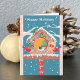 Ett tomt julhälsningskort med ett sött kardinalpar framför deras festliga fågelhus .