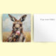 Sprid lite sommarstämning med det här charmiga och konstnärliga julkortet "Känguru som äter glass". Framsidan visar en högkvalitativ, impressionistisk oljemålning med rika, synliga penseldrag, som visar en känguru som håller en rosa glasskon mot en mjuk, soldränkt outback-himmel. Detta fyrkantiga kort är helt anpassningsbart; medan den livfulla konsten gör ett djärvt intryck på framsidan, är insidan förberedd med ett rent "Glada sommarsemester!"-meddelande som du enkelt kan redigera eller ersätta med din egen personliga hälsning. Det är ett perfekt val för dem som vill skicka en unik, hantverksmässig hälsning som kombinerar vilda djur med en lekfull sommarstämning.