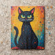 Denna fängslande pusselbit visar en charmig svart katt med hypnotiserande gröna ögon som tycks lysa av nyfikenhet och lekfullhet. Den rosa näsan och de ömtåliga morrhåren ger en förtjusande detalj, medan de invecklade mönstren på pälsen skapar en konstnärlig charm. Bakgrunden sprudlar av energi och livfullhet och visar en förtrollande blandning av varma gula och orange toner tillsammans med lugnande blå nyanser. Whimsical blommor och stjärnor ger designen en magisk, drömlik kvalitet. Perfekt för kattälskare och konstavskare erbjuder detta pussel en rolig utmaning som samlar individer eller familjer. Det färdiga pusslet fungerar också som en iögonfallande dekorativ pjäs, perfekt för att