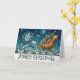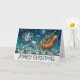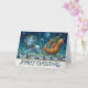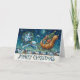 Ge dina nära och kära eller kunder en julkort de faktiskt kommer att prata om – en magisk, kunglig blå lion i natthimlen, krönt och åter krönt med järnek, flygande över mysiga, snötäckta hem medan den drar en pumpaformad släde fylld med presenter och ett julgran. Denna design sticker omedelbart ut i vilken hög med kort som helst, vilket gör den perfekt för de som älskar fantasifull konst, samlare av fantasfulla illustrationer och alla som letar efter en fräsch, icke-generisk julstämning. Kortet känns som ett mini-konsttryck, perfekt för inramning efter säsongen, så du skickar inte bara en hälsning – du ger en souvenir som gläder barn, vuxna och konstälskare lika.