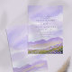 Vi presenterar vår Whimsical Lilac Night Landscape Bröllopsinbjudan - en blandning av nyckfullhet och elegans. Denna inbjudan visar en lekfull men ändå förfinad skildring av ett lavendeltonat nattlandskap, med en touch av nyckfullhet mitt i lugna berg och stillsamma fält, varsamt framställt med akvarietekniker.