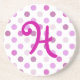 Det nyckfulla monogramstenunderlägg, med en rosa- och vitpolka pricker design. En stor en brevrosa märka med sina initialer, i mittet, är anpassadet. Personifiera med brev av ditt primat. Det underbara underlägg för något rum av huset och en skulle uppsättning gör en älskvärd gåva för något tillfälle.