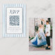 Ett RSVP-bifogatkort som matchar vår Whimsical Retro Blue Stripes Wedding-kollektion. Designen har en ram ritad för hand i marinblått mot en ljusblå randig bakgrund. Det finns en QR-kod för att svara online och se andra detaljer på din bröllopswebbplats. Baksidan av designen har ditt anpassade foto för att perfekt matcha framsidan. Se kollektionen som är länkad på denna sida för matchande artiklar. Skicka gärna ett meddelande till mig om du har några frågor, jag hjälper dig gärna!