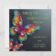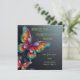 Fira din kärlek med denna vackert designade bröllopsinbjudan, med en fantastisk samling livfulla, flerfärgade fjärilar mot en djup, elegant bakgrund. De intrikata detaljerna hos varje fjäril skapar en känsla av lekfull charm och naturlig skönhet, symboliserar förvandling, kärlek och glädjen över nya början. Perfekt för ett par som vill tillföra en stänk av färg och en touch av magi på sin speciella dag, är denna inbjudan idealisk för trädgårdsbröllop, vårfirande eller någon annan tillställning som omfamnar naturens skönhet. Anpassa din text och gör denna förtrollande design unik för dig för att skapa den perfekta tonen för din oförglömliga bröllopsfirande.