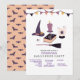 Den här fantasifulla rosa häx-inspirerade inbjudan är lämplig för både halloweenfirande och födelsedagsfest. Lägg till din egen text i designen genom att använda rutorna "Redigera designmall" på höger sida av objektet, eller klicka på den blå knappen "Anpassa den" för att ändra texten, ändra typsnitt och färger och även lägga till ytterligare information eller bilder i designen. Välj mellan tolv unika papperstyper, två utskriftsalternativ och sex formalternativ för att utforma ett kort som är perfekt för dig. © Julie McIver