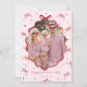 Önska familj och vänner massor av kärlek och en glad Alla hjärtans dag med en personlig och fantasifull Alla hjärtans dag-kortmall med ett familjefoto bredvid en fantasifull design med röda hjärtan, rosa ränder och röda band.