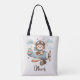 Denna personliga shoppingväska har en söt teddybjörn, komplett med pilothatt och halsduk, som flyger genom luften i ett charmerande dubbeldäckarplan. Mjuka pastellfärger och en ljusbeige bakgrund skapar en förtjusande design med accentuerande luddiga moln och tindrande stjärnor. Denna unika väska är perfekt för att bära med sig allt man behöver samtidigt som den tillför en touch av lekfull charm till ens dag.