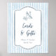 Nyckfulla Blå Randiga Kort & Bröllopsskylt för Brö Poster