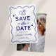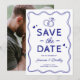 Njut av charmen hos våra fantasifulla, handritade "spara datum"-bröllopskort. Varje kort är ett konstverk med roliga blå klotterillustrationer, ribbande kanter, kärlekshjärtan och vigselringar. Designade mot en fräsch vit bakgrund och anpassade med ert foto, är dessa kort mer än bara ett tillkännagivande – de är det första kapitlet i er brölloppshistoria.