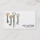 En visitkortsmall med en arrangemang av nycklar. Uppgifter om företaget på framsidan, med namn och kontaktuppgifter på baksidan med en upprepning av nycklar motiv. Kan anpassas på många sätt som är lämpliga för många typer av företag, särskilt hyresvärdar, egendom-förvaltning, uthyrningsföretag, låssmidesystem, säkerhet osv.