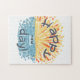 Ett glatt sol stiger över en blå horisont med färgstarka strålar som sprider sig utåt, åtföljt av texten "lycklig new day!" i lekfull skrift. ett livfullt och optimistiskt biet av konsten.