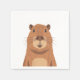 En charmerande illustration av en kapybara tittar rak framåt med en lugn och ett mjukt uttryck. Bilden fångar kapybarens unika egenskaper, inklusive dess runda ansikte, uttrycksfull ögon och distinkta whisky. De minimalistiska tonerna stil och de jordnära tonerna ökar det snara utseendet och skapar det en tilltalande syn för djur älskare.