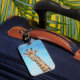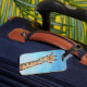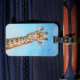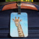 Nyfiken giraffe med blå konfetti Himmel Bagagebricka