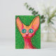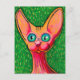 Nyfiken Glad Hårfri Katt i Oljepastell på Grön Vykort