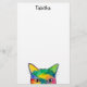 En nyfiken regnbågskatt kissar upp från sidans grund.