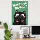Lägg till humor i badrumsdécor med den här lustiga svarta katten poster! Med en söt tecknad kattunge som frågar "Whatcha Doing?" är den här vackra väggkonsten perfekt för kattälskare. Perfekt för badrum, rum eller kontor - en perfekt blandning av söt och rolig katt humor för att belysa alla utrymmen.