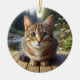 Nyfiken Tabby Katt Minnessak Julgransprydnad Keramik