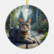 Nyfiken Tabby Katt Minnessak Julgransprydnad Keramik