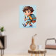 Nyfiken Tecknad Boy Learning Äventyr AI Art Poster
