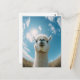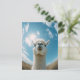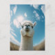 En charmerande alpaca pissar märkligt nog in i kameran, fångad i ett roligt finanspolitiskt perspektiv. De ljusa blå himmel och de mjuka molnen ger en härlig bakgrund, medan sol lyser över, vilket ger en glad glöd till denna hemska scen.