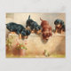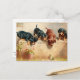 Nyfikna hundvalpar och grodor vykort