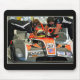En förare tittar på en av mekanikerna som drar åt hans bälten.