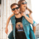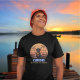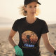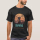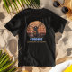 Nyfikna pirat-katter decimerar gamla mystister T-Shirt: En svart katt klädd som pirat tolkar ett gammalt dokument mot ett retrosolnedgång.