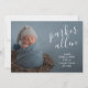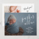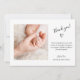 Elegant söt tillkännagivande för födelse har ett nyfött foto, baby namn och födelsestatus med vit chic på framsidan. Ett andra foto, tack för ditt meddelande och förälderns namn på baksidan.