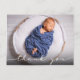 Announce Birth från baby och tack till er familj och vänner för deras gåvor och önskemål med detta söta födelsemeddelande tack för vykort. Utformning med 1 bild av baby, vitt tack som du täcker över skript i trendigets handskrivna teckensnitt på framsidan. Lägg till mer information, t.ex. födelsestatistik, på baksidan av vykortet. Kontakta mig om du behöver hjälp med den här designen.