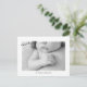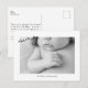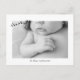 Modern Nyfödd bebis Birth Photo Tack Postcard. Två sidor. Meddelande på baksidan. Födelseinformation på baksidan. Filtret Svart och Vit används på fotot. Vykort. Trött teckensnitt.