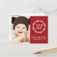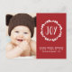 Det här vackra helgdag födelsemeddelandet har en festlig utformning och ett lodrät foto av nyfödd bebis. En vit hand plockade-andedräkt ramarna ord "Joy" skriven med vit hand mot röd bakgrund (detta färg kan ändras om så önskas). Lägg till din baby namn, födelseinformation och namn. På baksidan kan du skicka ett längre anpassningsbar till dina nära och kära.