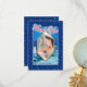 Det är enkelt att anpassa en blå vinterscen i helgdag med Geometric guld ram med en text, typsnitt, typsnitt, färg, papper form och urval av tolv pappra typer.