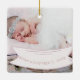Enkel och delikat rödröd och blek lilac rosa handskriven (redigerbar) Första julet håller träd ornament med banderoll och två bilder av baby anpassningsbar (fram och bak). Anpassa det med din baby namn, foton, år och din text på båda sidor!