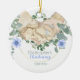 Nyfödda pojke sover i händer eucalyptus julgransprydnad keramik