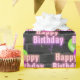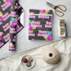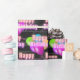 Grattis på födelsedagen rosa - nytecken med ballongbukett på svarta brickan mönster