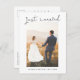 Enkel och modern bröllopsannonseringskort med en handskriven casual text som säger "Just Married" med hjärtan ovanpå ditt foto. Meddelandet på baksidan av kortet är redigerbart.