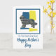 Nyfoundland / Newfie hund siluett i gul blå och svart modernt rutmönster. ‘Till den bästa hundpappan’ och ‘Glad Fars Dag’ på utsidan och älskvärda meddelandet på insidan kan ändras till vad du vill. Bra sätt att fira en djurägares Fars Dag.
