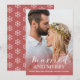 Jul modern gift och glad komplett bröllopsfotokort med röd ombre. Modern och kalligrafi typografi överlägg. På baksidan av kortet är en dammig röd med ett vitt snöflingemönster. Skicka meddelande till mig om du behöver hjälp eller har några speciella önskemål.