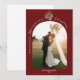 Det perfekta julkortet för nygifta! Denna design har en djup, rik röd bakgrund och vattenfärg misteltoe precis ovanför ert bröllopsfoto. Orden "ha en gift liten jul" accentuerar kurvan på den välvda formen. Allt som återstår är att lägga till ett foto av bruden och brudgummen och ert anpassade meddelande!