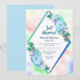 En elegant blå akvarell blomster diamant geometrisk bröllopsinbjudan.