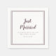 "Just Married" bröllocksdunkar i modern, minimalistisk stil med en dubbel ram i djupt plommon på krispigt vitt. Den rena layouten och det eleganta skrivsättet skapar ett tidlöst, klassiskt utseende som förhöjer vilken bröllopsbar eller cocktailtimme som helst. Anpassa namnen och datumet för att fira det nya herrskapet på ett chic, modernt sätt. Kombinera dessa servetter med matchande artiklar i denna kollektion för en sammanhängande mottagningslook. För anpassade färger eller designstöd, använd meddelandeknappen i denna lista.