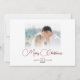 Nygift anpassad julkort och/eller bröllopskort med 2 foton (ett på varje sida), en elegant modern kalligrafisk typsnittstitel MERRY & MARRIED som visas i redigerbar röd färg på framsidan och ditt val av julhälsning på baksidan i din valda textfärg. HJÄLP: För hjälp med designändring eller anpassning, färgändring eller överföring av designen till en annan kortstil eller produkt, kontakta designern INNAN du beställer via Zazzle Chats MEDDELANDE-flik nedan eller mejla makeitaboutyoustore@gmail.com.