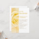 En modern efterbröllopsinbjudan med en gul ros-panel.